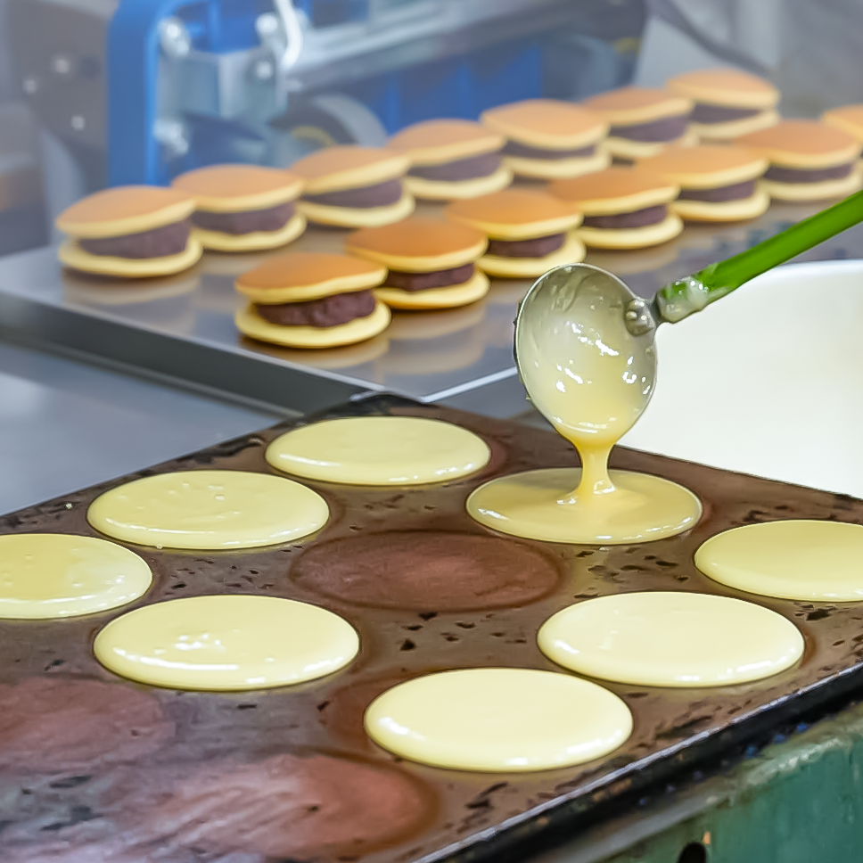 当店の和菓子は、職人が全行程を手作業で行っております。生地や餡の状態に応じて水分量や火加減を調整し、混ぜ方や成形の速度も基準に沿って確認しています。機会による大量生産は行わず、重量や外観などの基準を満たしたもののみを陳列。ひとつひとつの工程を丁寧に行うことで、食材をいかした当店だけのお菓子ができあがります。