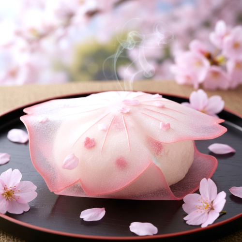 春風に舞う桜を模した、軽やかで繊細なお餅。透明感あふれる見た目と桜の霞を食べているような不思議な口どけで、散りゆく桜の趣を表現しました。贈り物に最適です。